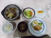 夕食は、ハンバーグと魚のソテーとサラダ、そしてコーンスープでした。
