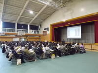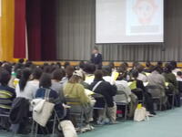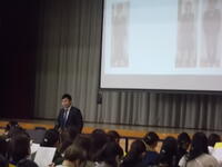校長挨拶後、本校の学習指導方針や生徒指導方針等、第三中の概要について説明させていただきました。