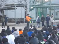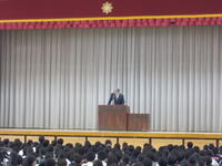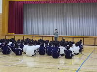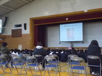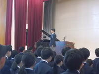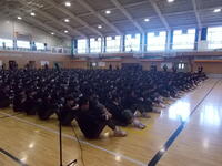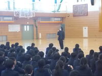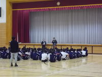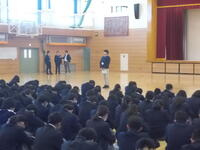 終業式に続いて、全校集会が行われました。生徒指導担当教員から冬休みを迎えるにあたっての話があり、その後表彰が行われました。