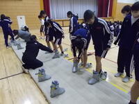 1月9日(木)~11日(土)のスキー教室に向けて、1年生が、スキーウェアとブーツのサイズ合わせを行いました。