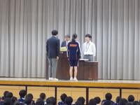 表彰では、英語弁論大会、読書感想文の表彰に加え、剣道部、柔道部、男女テニス部、駅伝大会、陸上関東大会、アンサンブルコンテストの表彰が行われました。