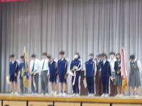 校長講話では、今学期の成長について振り返るとともに、来学期に向けて意欲を高めるお話がありました。また、中学生に今どうしても知ってほしいこととして、いわゆる「闇バイト」についてのお話もありました。具体的な事例をもとに、身近なところに危険が忍び寄ってきていることを自覚してほしいというお話でした。