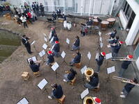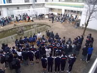 5時間授業終了後の放課後、本校中庭で吹奏楽部によるウィンターコンサートが開かれました。