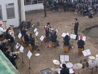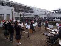 「ぶりんばんばんぼん」の演奏でスタート。最初から聴衆である在校生も盛り上がり、楽しい雰囲気に包まれました。寒空の下のウィンターコンサートでしたが、定番のディズニーメドレーなど、吹奏楽部の皆さんの軽快な演奏で聴く人は寒さも忘れて楽しい気持ちで音楽にひたるひと時でした。