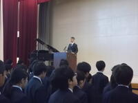 その後、各学年の代表生徒による「2学期の振り返り」スピーチがありました。学年の代表にふさわしい立派な内容と話ぶりに、全校生徒は集中して耳を傾けていました。