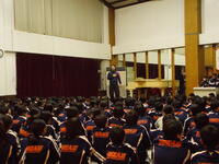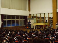 とても良い天気の中、開校式を行いました。実行委員長のお話や、講師の方たちの紹介がありました。