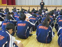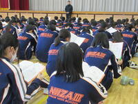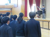 令和6年が始まりました。式に先立ち、能登半島地震で犠牲になった方々へ黙祷を捧げました。校歌を元気に歌い、校長先生のお話は大相撲の行司の掛け声「ハッケヨイ」の意味。自分から氣を発して前向きに取り組み成長する3学期にしていきましょう。