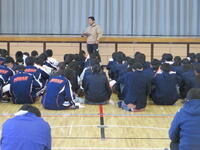 土屋先生から「昨日、始業式でしたが、始業式ができなかったところもあります。石川県、新潟県の一部の学校です。幸いスキー場からは『安心して来てください』と連絡をいただいています。何事もすぐに切り替えてよい方向に変わっていける君たちですから、新潟の人たちに元気を与えて来ることもできるはずです。考動を実践して、スキー教室を成功させて帰ってきましょう!」
