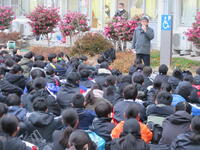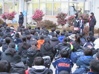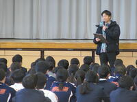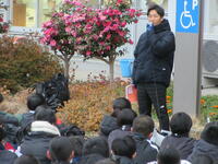 校長先生のお話。各学年、各個人のがんばりが形になった2学期でした。「自業自得」という言葉があります。漢字で書けますか?仏教の言葉なのですが、失敗したことは自分の責任だ、というような悪い意味で使われることが多いです。しかし、本来の意味は、いいことも含めて自分のしたことが結果となって返ってくる、という意味です。努力したことが必ずいい結果になるとは限りませんが、いい結果は必ず努力の成果なのです。また、努力すれば必ず力はついています。いい意味で、自業自得にできるよう冬休みも力をつけてください。