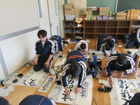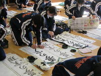 国語の授業は書きぞめに取り組んでいます。3年生は「文化の伝承」。