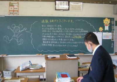 明日はピカピカの1年生です。楽しみにしています。気をつけて登校してきてください。