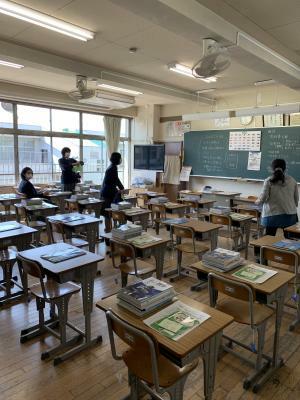 本日は、新1年生への教科書配布日でした。小学校ごとに時差登校をしてもらいました。新入生の皆さんご協力ありがとうございました。