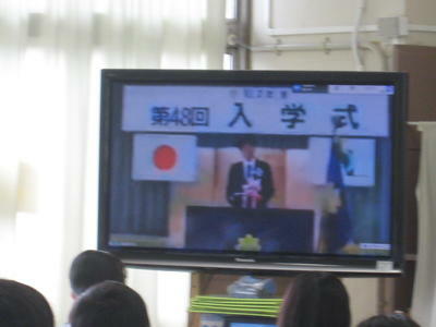 各教室で放送による実施を予定していましたが、教員の発案と協力により、始業式・入学式ともに体育館から各教室に中継で実施することができました。