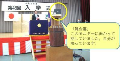 新入生代表の「1年7組国分陸彪さん」もモニターを前にリハーサルを行い、緊張しますと言いながらも本番は堂々とした新入生代表の言葉でした。