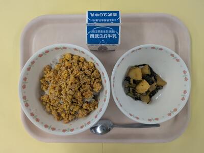 鶏そぼろ丼・じゃがいものごま和え・牛乳