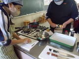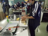 2月6日(金)2年生調理実習 投稿: ルーム管理者 (14:18) 1月下旬から2年生は家庭科の学習で調理実習を行っています。 鮭のムニエルと豚の生姜焼きを調理しています。 本日は、2年5組が豚の生姜焼きを作っていました。 しょうかをすることが初めてと口にしている子供たち。 確かに最近はチューブのしょうがが多いかもしれませんね。 自分たちで作った料理はさぞかしおいしくいただけたでしょう。 -