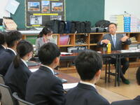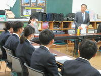 市長との懇談会 投稿: ルーム管理者 (2024/01/24) 「市長との懇談会」ということで、並木傑市長が来校、生徒会本部と熱いディスカッションとなりました。新座市をPRするには?というプレゼンに対して、並木市長は正面からお答えいただき、新座市のこれからについてお話しされました。 三中の代表として、さまざまな質問もできました。市長からは、大人になったら新座市を活性化するよう力を発揮してください。とお言葉をいただきました。市長、ありがとうございました。 -
