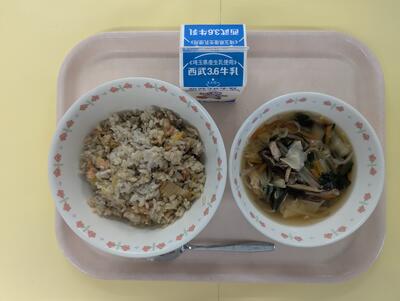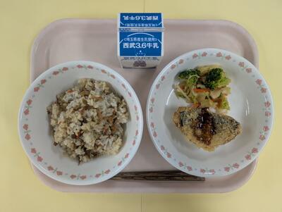 五目ごはん・あじフライ・ごまみそ和え・牛乳