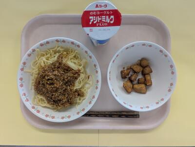 ジャージャー麺・さといものからあげ・飲むヨーグルト