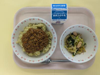 鶏そぼろ丼・じゃがいものごま和え・牛乳