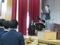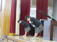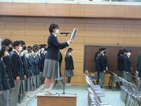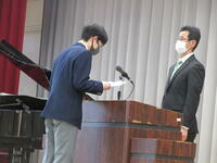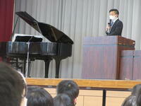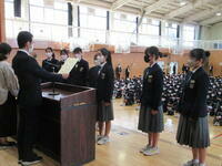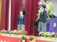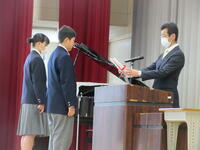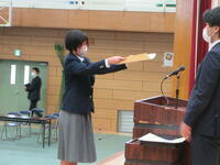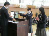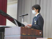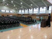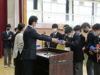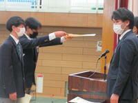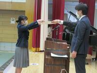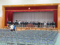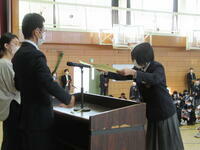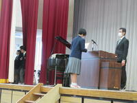 3年生は今日を含めてあと3日で卒業していきます。練習を重ねてきた3年生はもちろん、会場を準備してくれた2年生、先輩のためにがんばって式に取り組もうとする1年生も立派な態度で参加していました。今日は在校生には保護者席に座ってもらいましたが、全校生徒が「卒業生、入場。拍手でお迎えください。」の後の在校生の拍手が大きく、温かくも盛大な雰囲気で始まり、国歌、校歌を全校生徒でしっかり歌えました。卒業証書授与はだいぶ形になり、返事も立派でした。校長式辞では「君たちの入学式は6月でした。その年には東京オリンピックがあるはずでした。オリンピック憲章に『より速く、より高く、より強く』の言葉があります。『最も速く…』ではない。競って一番になることが目的ではないのです。今よりも少し、自分のできることを増やそう、ということです」のお話をいただきました。卒業生合唱では、新たなチャレンジである、「四部合唱・旅立ちの日に」を歌い上げてくれました。当日が楽しみです。在校生代表の生徒会長から、卒業生を送る言葉を伝えました。在校生は当日参列できませんが、家で、心で見送ってください。卒業生、登校は残り2日です。