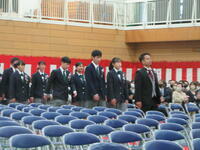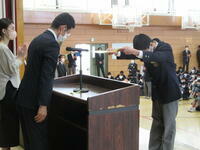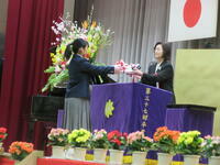 ついに、三中を巣立つ日が来ました。第50回卒業証書授与式が挙行されました。3年間のさまざまな思いを胸に、堂々とした姿で式に参加し、感動に震える中、閉式、退場まで立派な態度でした。やはり本番の「旅立ちの日に」はすばらしい仕上がりでした。合唱の始まる前から涙を流す先生もいて、名残惜しい別れのひとときとなりました。校長式辞にあった、「ひとつ失敗するたびに、僕たちは成長できる(大谷翔平選手)」「1万回失敗しても、1万とおりのうまくいかない方法を知ることができた(エジソン)」もう一度だけ挑戦してみる、リトライ精神を持ち続けてください。洋洋たる赤学年の前途に光あれ!ご卒業おめでとうございます。